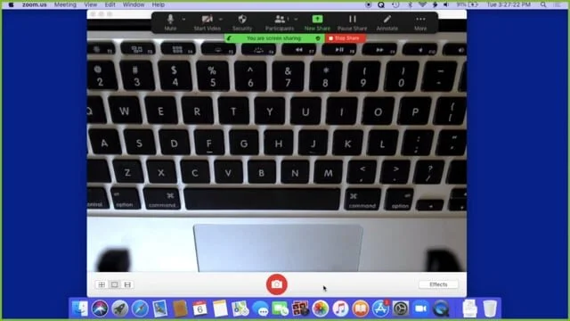 Step 4 - Click the Share Screen button, to share Camera (or Photo Booth)