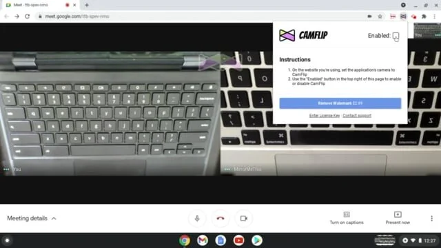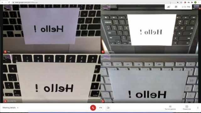 To unmirror the video you’re transmitting to your students in Google Meet, you can use a Chrome extension called CamFlip.